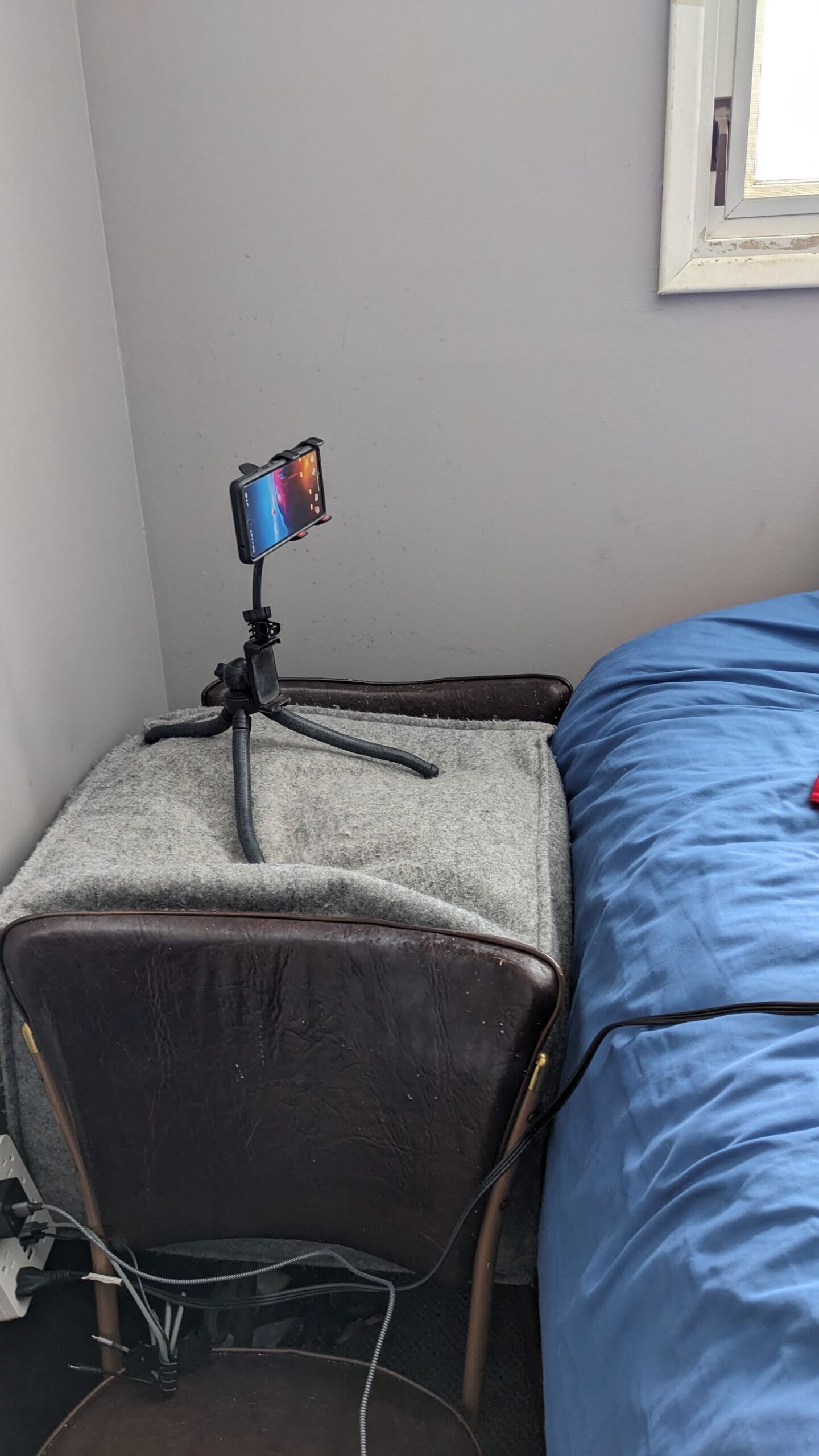 Shawshaft for work yesterday morning, and I worked on figuring out how to achieve a proper camgirl camera angle with the space and equipment I have to work with. I tried the one free corner of the bed, with the assumption that I could hang my legs over the corner. It worked, but now the lighting was bad. The window would be behind me; not only did I lose most of my gorgeous natural light, I was also back lit and my ring light is making me look like a cracked cheesecake.