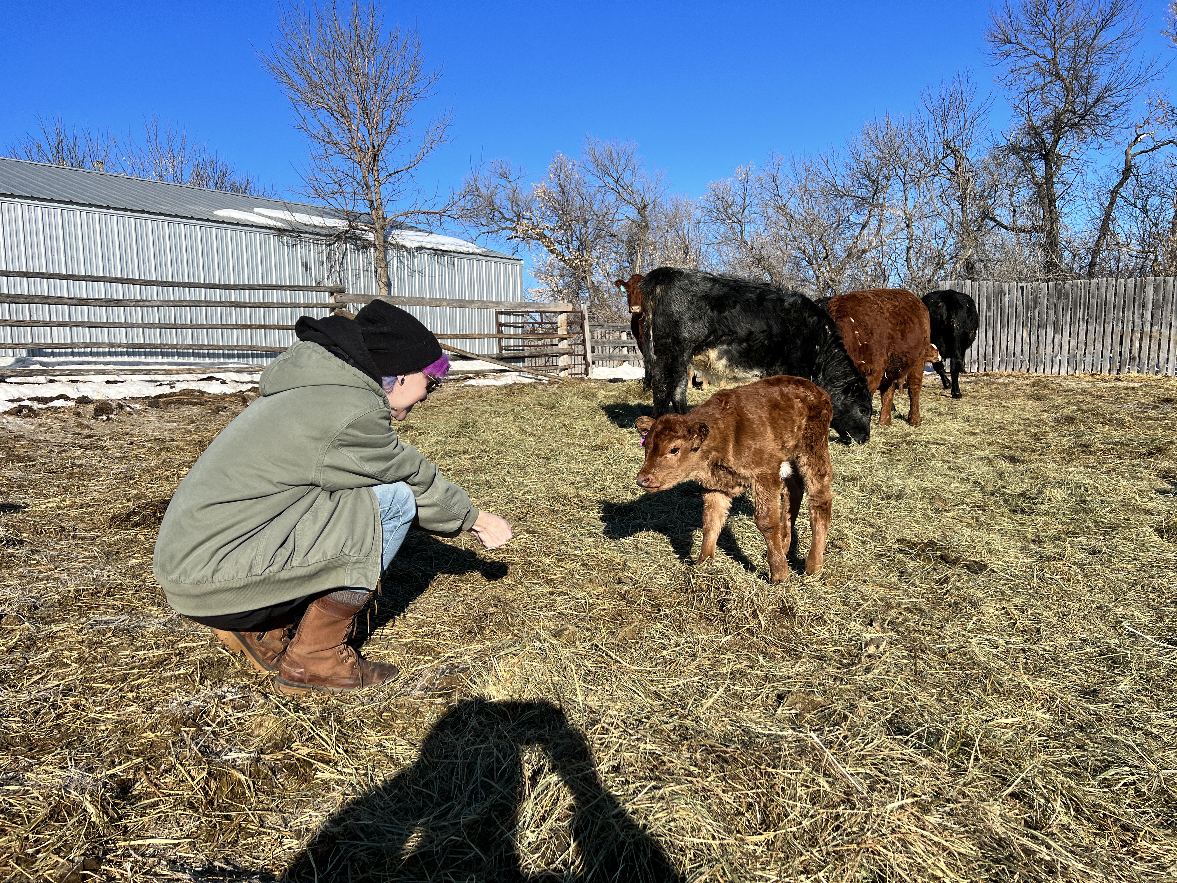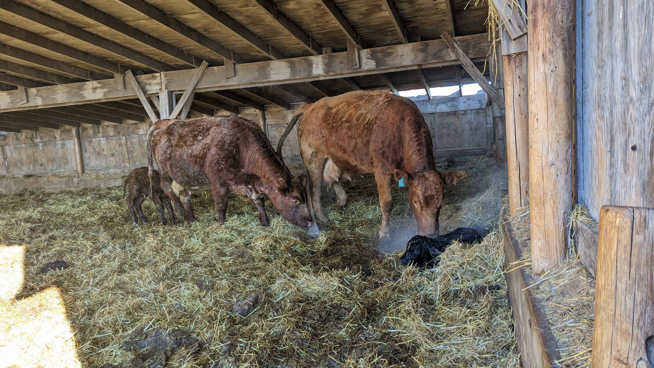 Just as I was finishing up the morning posting and shit, Shawshank‘s dad called to let us know the cows were in and calving this morning. I had hardly overheard him say they would be heading up in 30 minutes before I was off the couch and looking for pants.