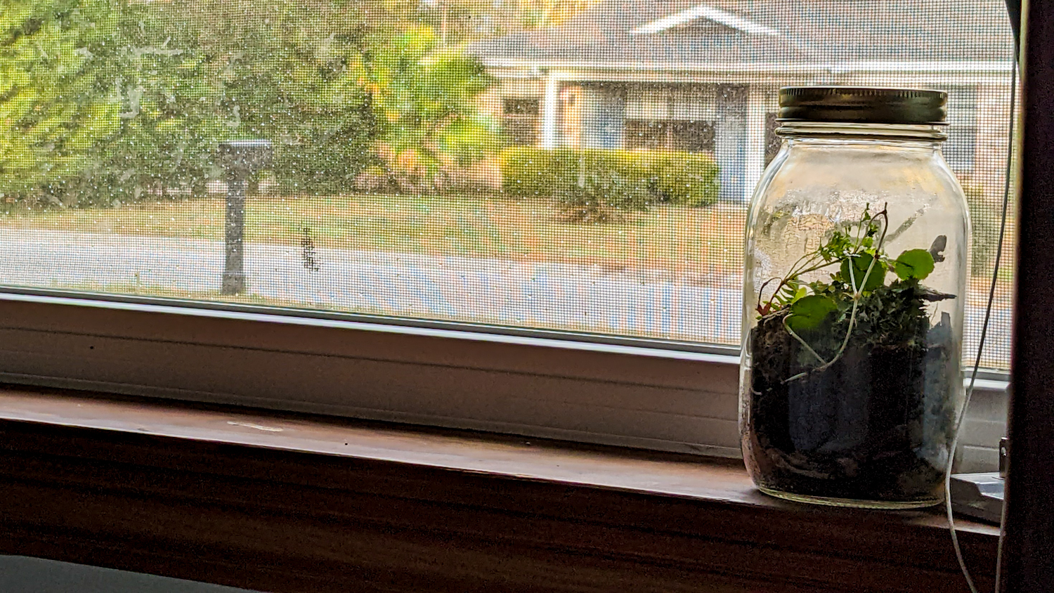 I used one to make a tiny native terrarium from plants and soil from Mom‘s backyard. I call it “Teensycola”. Capturing the snail wasn’t intentional, and I might bring it back outside if I see it munching too many of the plants. My next little project is to make a closed ecosystem from one of the creek areas nearby. I’m going to leave the remaining jar in the truck (with some rubber gloves), so I’ll have it handy when I find some place to fill it.